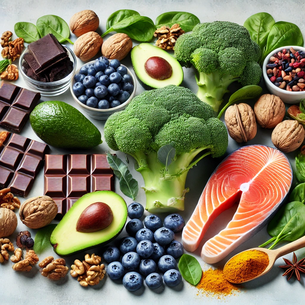 - 항산화제: 뇌 세포 손상 방지 (비타민 C, E, 플라보노이드)