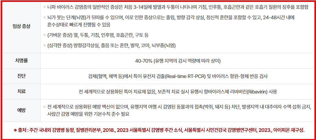 - 질병관리청은 니파바이러스 해외 유입 감시체계 강화