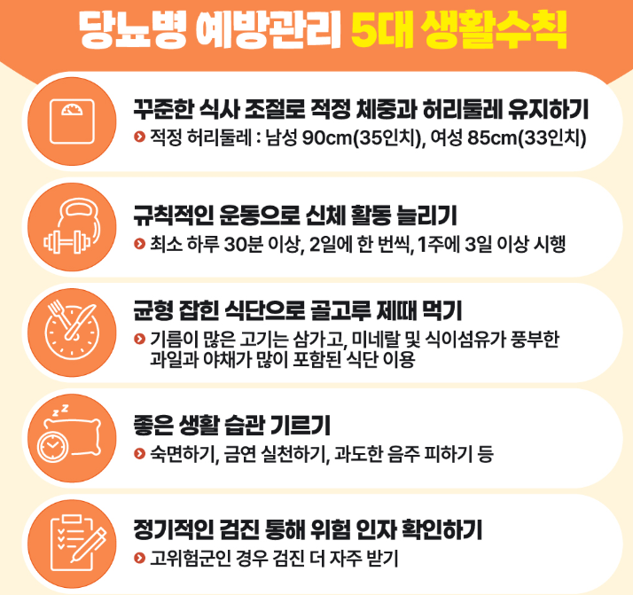 당뇨병 예방을 위해서는 본인의 생활습관을 되돌아보고, 당뇨병 원인을 적극적으로 파악해 제거하려는 노력이 중요합니다.