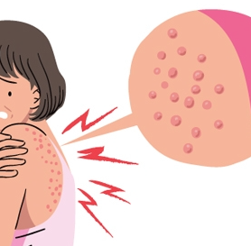 또한 시간이 지나면 붉은 반점이 생기며 수포로 발전합니다.