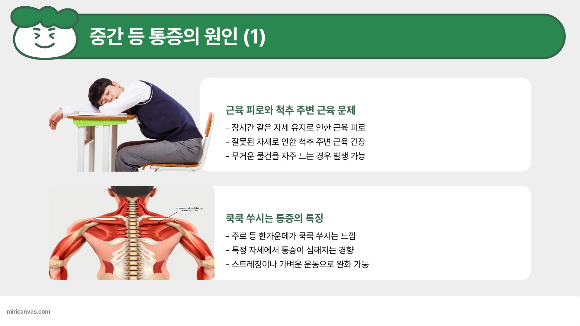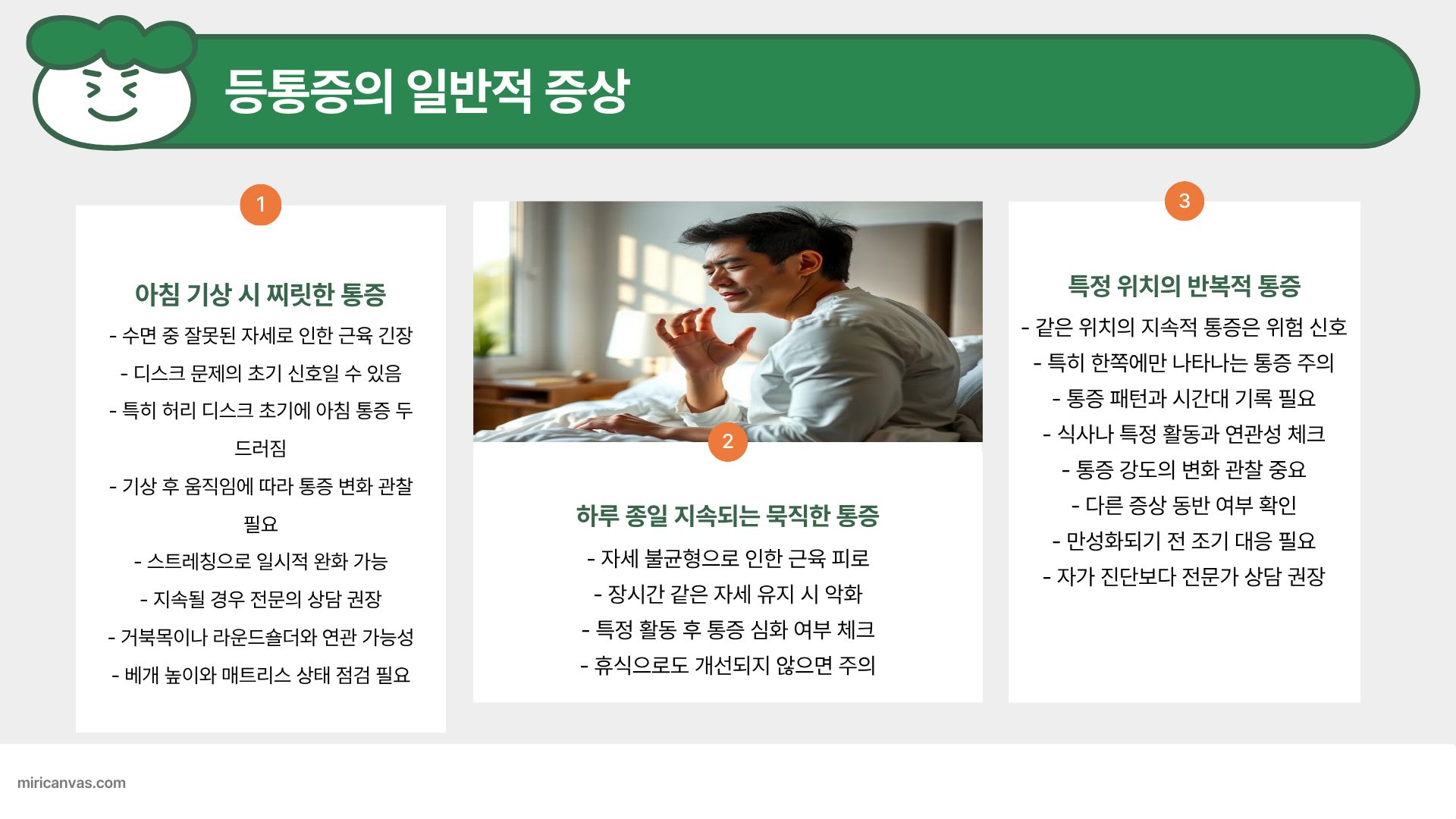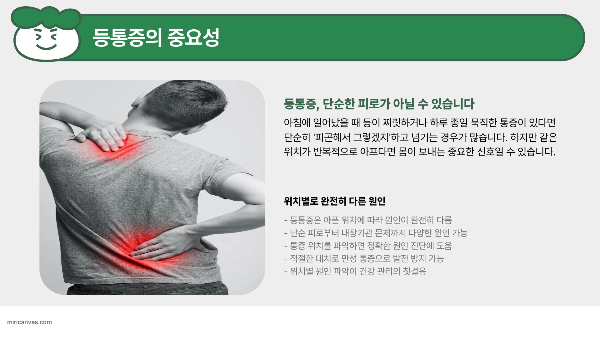 등 통증은 발생하는 부위가 곧 원인을 말해줍니다.