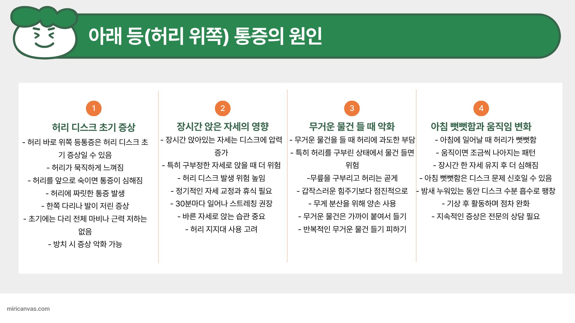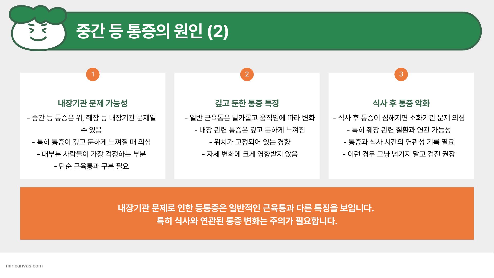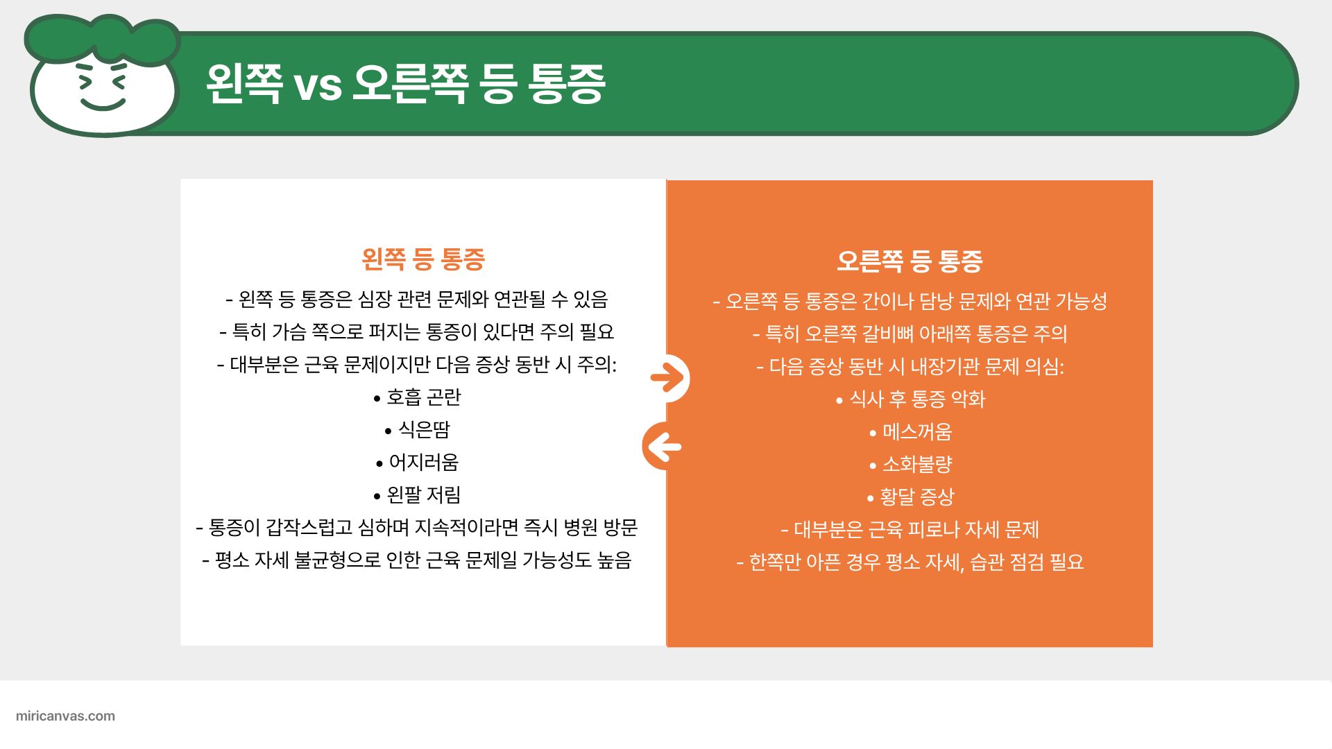등 통증은 발생하는 부위가 곧 원인을 말해줍니다.