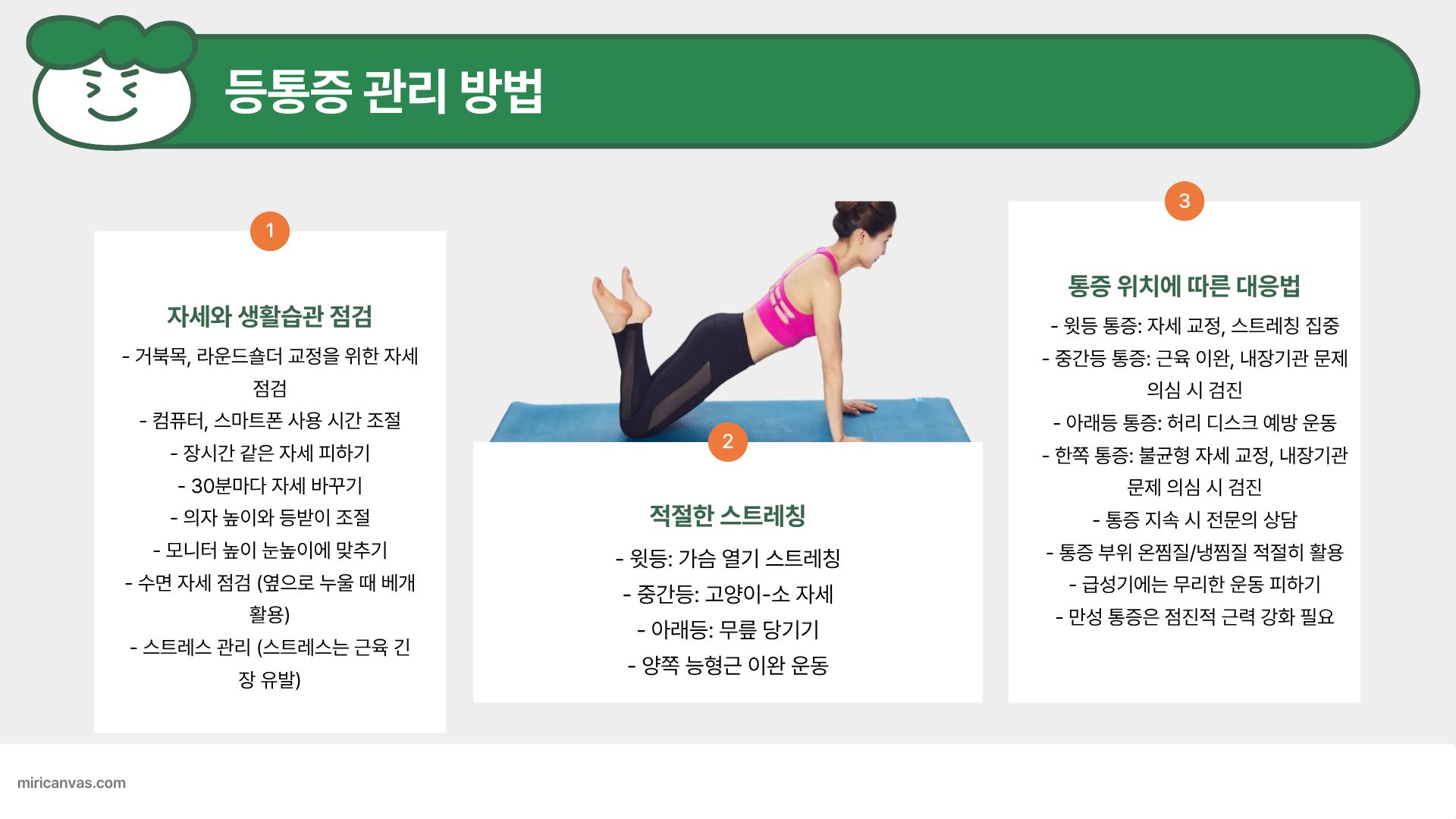 이러한 습관은 등 통증 예방에 큰 도움이 됩니다.