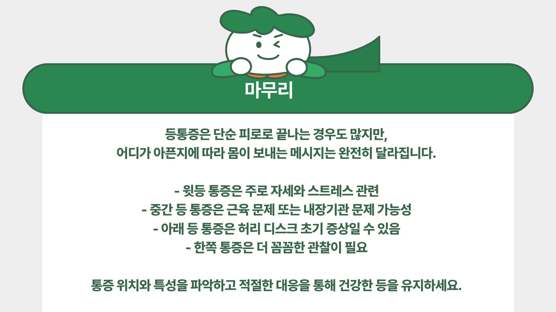 마무리|등 통증은 부위가 답이다