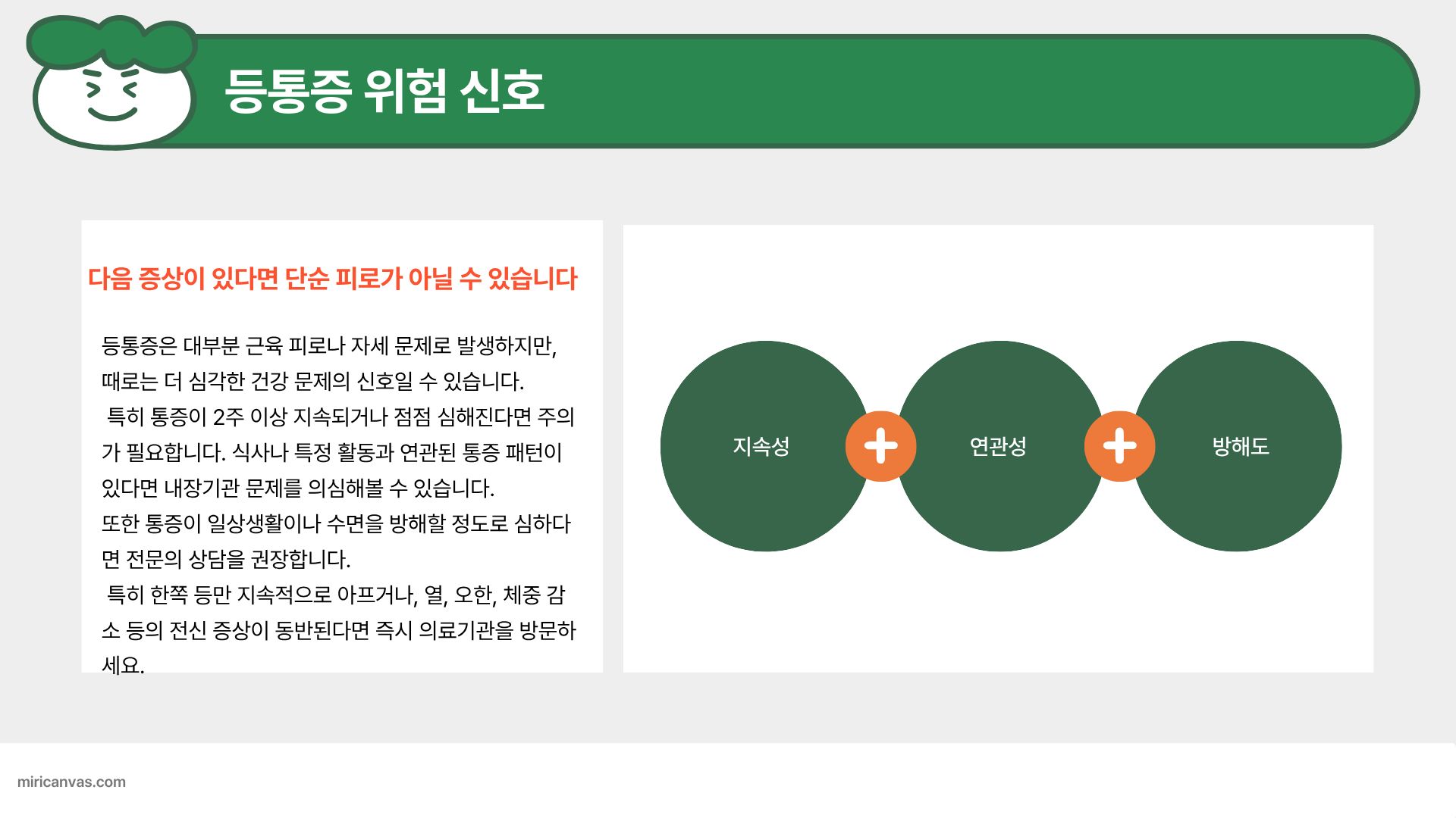 다음 질문에 해당한다면 등 통증을 가볍게 넘기지 마세요.