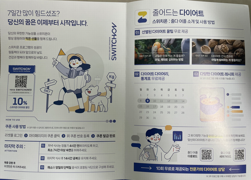 설명서에 보면 어플 안내도 되어있어서 쿠폰 및 상담에 대한 정보도 얻을 수 있으니 활용하면서 꾸준히 다이어트 효과를 유지할 수 있도록 노력하면 좋을것 같습니다.