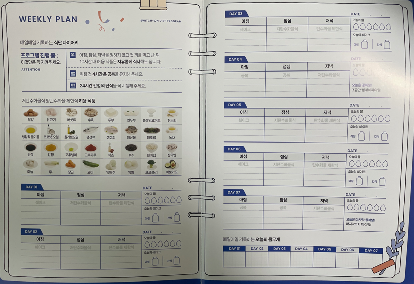 4일차와 7일차엔 공복을 유지하는 시간이 길어서 힘드니 스케쥴 조절 꼭 하셔야 해요!!!!