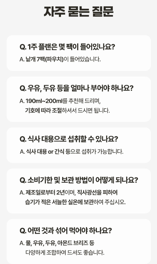 - 씹는 즐거움 부족:액체 형태라 씹는 재미가 없어서 가끔은 씹는 음식이 그리웠어요